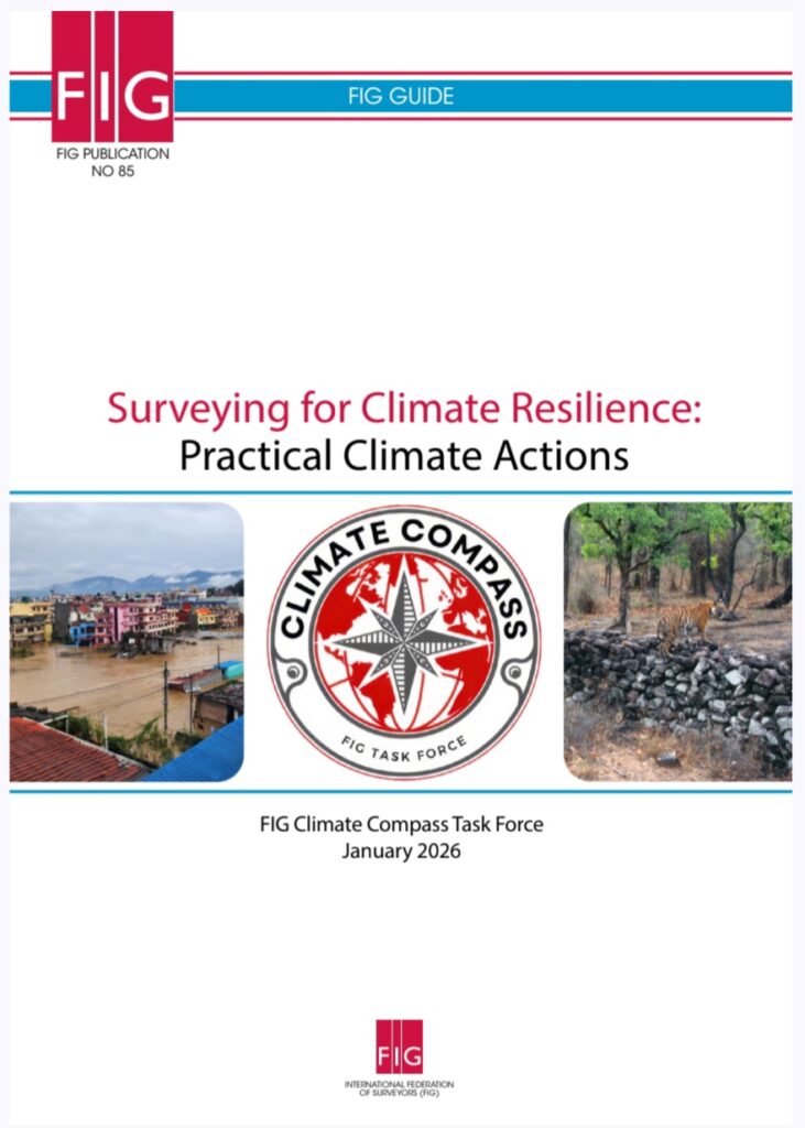 La nouvelle publication de la FIG montre comment les professionnels de la topographie du monde entier peuvent contribuer concrètement à l'adaptation au changement climatique et à la résilience face aux catastrophes. Élaborée en 2026 par le groupe de travail « Climate Compass » de la FIG, cette publication rassemble les enseignements tirés des semaines de travail de la FIG de 2023 à 2026 ainsi que d'initiatives internationales. Le message central est le suivant : la géodésie est un élément clé de la stratégie climatique mondiale. Des données géographiques précises, une gestion responsable des terres et des technologies modernes permettent d’identifier les risques à un stade précoce, de planifier des stratégies d’adaptation et de protéger les droits des groupes vulnérables.